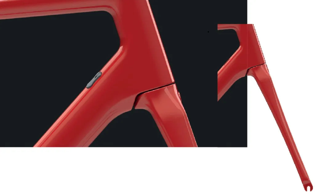 Dans notre laboratoire de test interne, nous avons perfectionné la taille et le profil du tube diagonal pour chaque taille de cadres afin d’obtenir des caractéristiques de pilotage supérieures.Reliant le tube de direction au pédalier et aux bases, le tube diagonal asymétrique en carbone est conçu pour un équilibre parfait entre la rigidité verticale et la torsion.